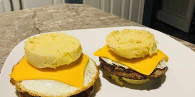 Build your sausage egg muffins. By this time the cheese should be melted.